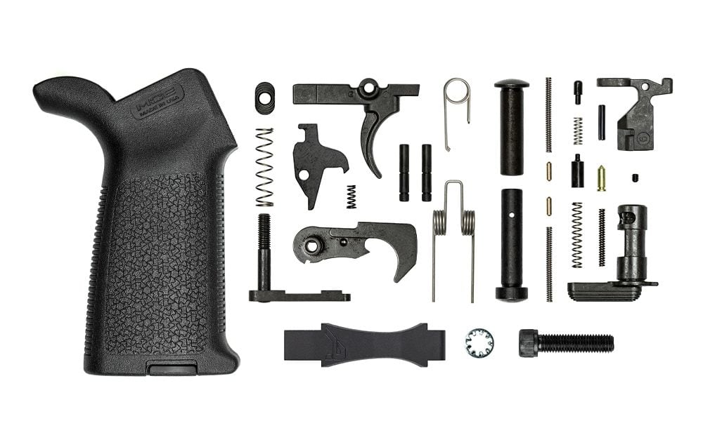 Our lower parts kit helps you to build a custom AR15 from the ground up. Mil-spec dimensions and coating ensure the highest quality and correct component interface. Our upgraded Enhanced Lower Parts Kit features a Magpul MOE Grip and Aero Precision Billet Trigger Guard.